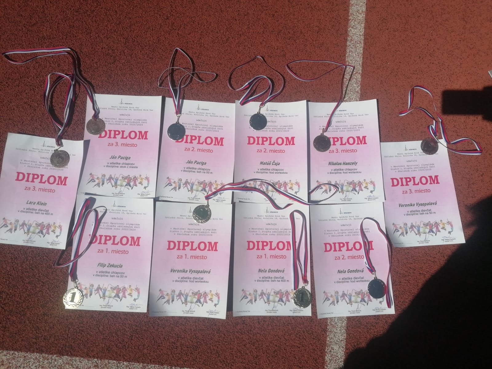 Naši žiaci boli veľmi úspešní. Spomedzi chlapcov sa darilo najmä Filipovi Zekuciovi, ktorý získal 1. miesto v behu na 50 m. Ján Paciga obsadil 3. miesto v skoku z miesta a 2. miesto v behu na 50 m. Matúš Čaja získal 2. miesto v hode vortexom a Nikolas Hanzely vybojoval 3. miesto v tej istej disciplíne.