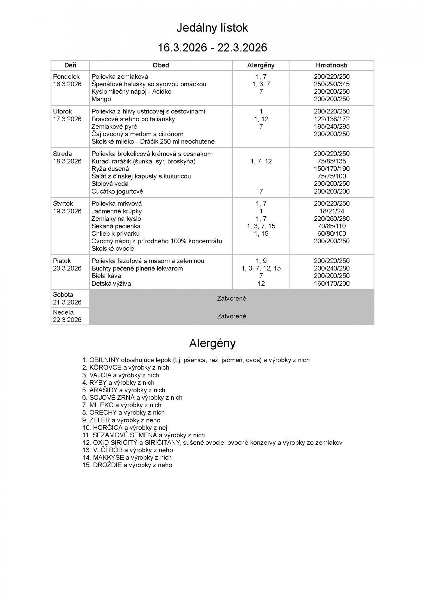 Jedálny lístok